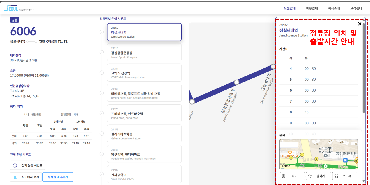 - 6006번 버스정류장 안내 (공항방향 정류장순)