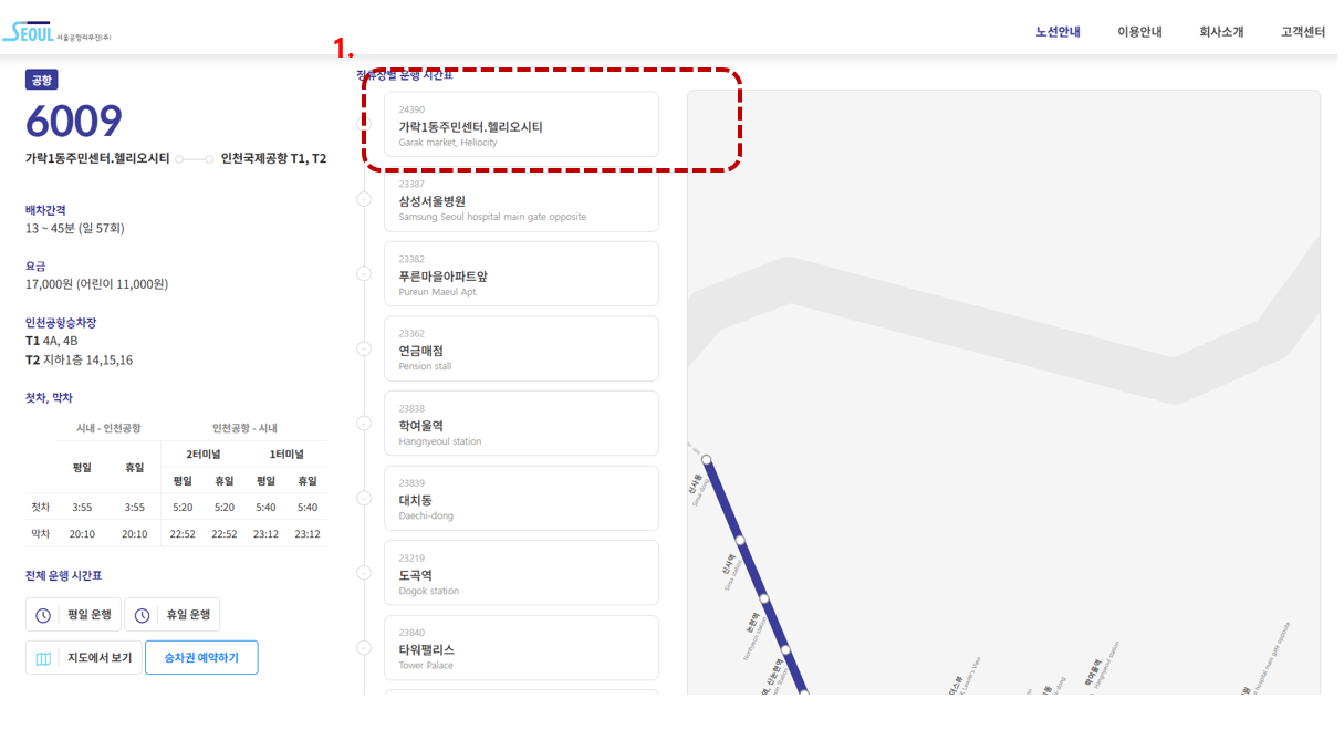 공항버스 6009번 노선 상세 확인하기
