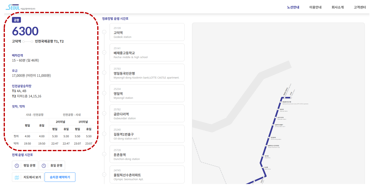 공항버스 6300번 노선 안내