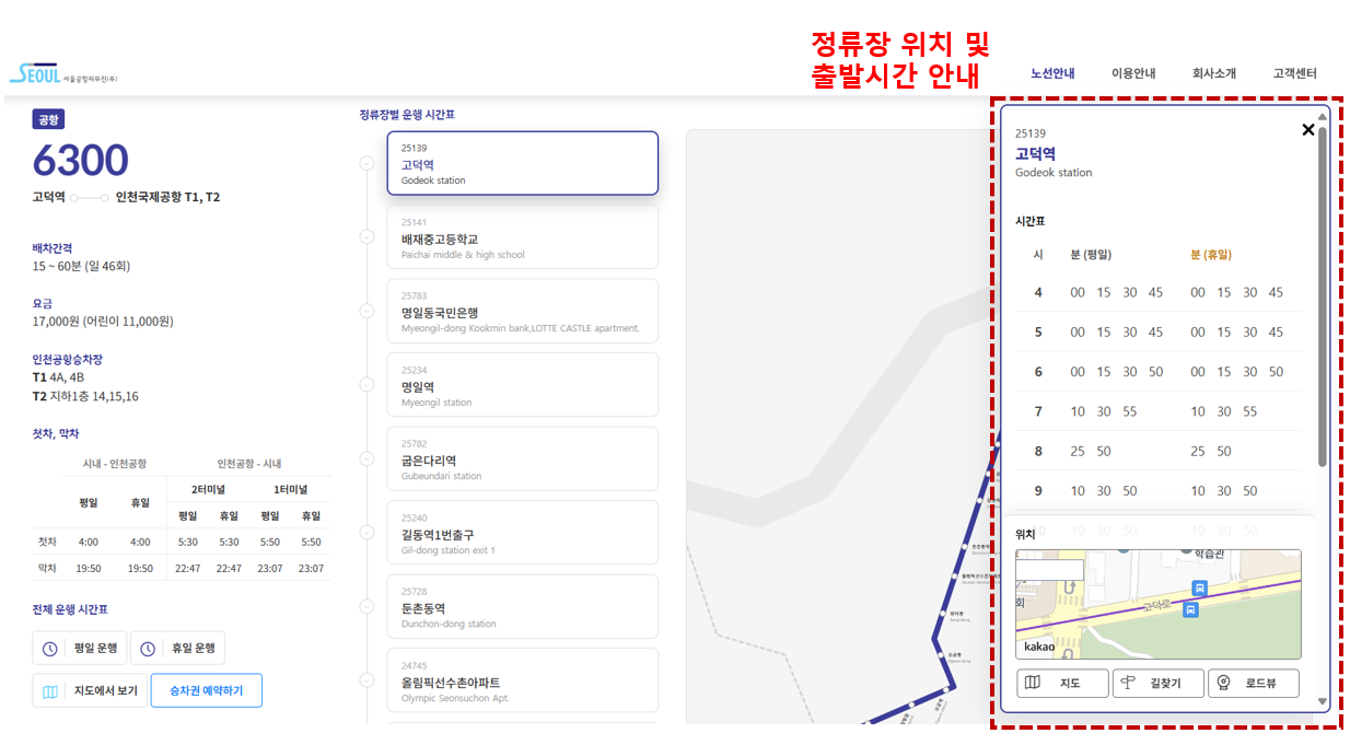 - 6300번 버스정류장 안내 (공항방향 정류장 순)