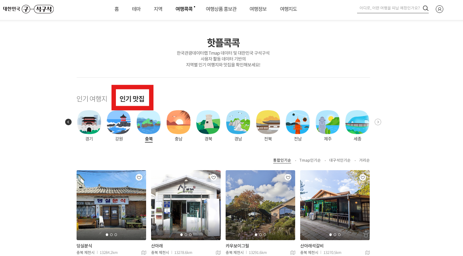 자세한 안내는 인기여행지/맛집 안내를 참고하시기 바랍니다.